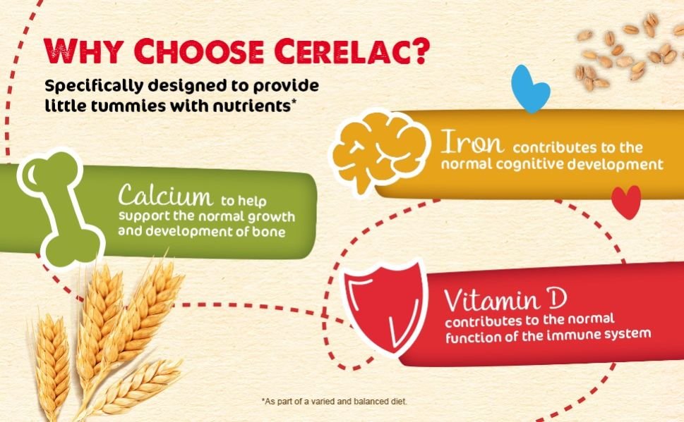 NESTLE CERELAC Infant Cereals with iRON+ WHEAT & FRUITS 1 kg tin, a delicious and nutritious wheat-based cereal with milk powder for your baby from 6 months. Fortified with iRON+, which helps to support healthy brain and cognitive development. Contains BL and immunonutrients (A, C, D and zinc) to support your baby’s immune system. Made from 100% natural grain and easily digestible. A convenient and nutritious way to slowly introduce new tastes. When your baby is this age, they’re ready to try food for the first time, which is why we’ve developed a baby food cereal just for their little tummies. Slowly making it a part of their diet will encourage them to enjoy new experiences with food.