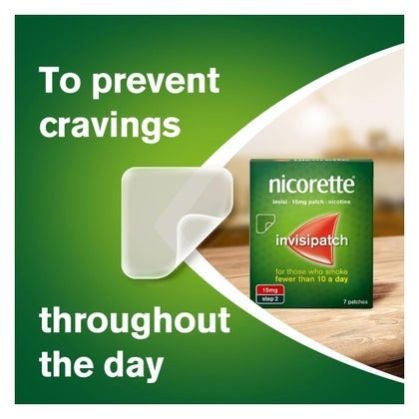 Nicorette Nicotine 15mg Invisi Patches are a low-dose nicotine replacement therapy used to alleviate withdrawal symptoms and cravings, gradually decreasing in strength over time.