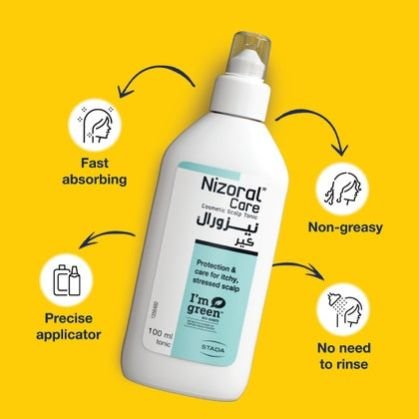 - Apply twice a day or as required directly onto a dry or wet scalp and massage gently. Do not rinse. Can be used before blow-drying. Nizoral® Care Scalp Tonic can be used in combination with other hair care or styling products and is suitable for all hair types.