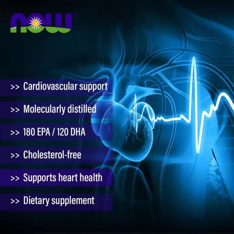 NOW Omega 3 1000mg Tab is a fish oil-derived dietary supplement with 1000mg of EPA and DHA, promoting cardiovascular health, maintaining healthy triglyceride levels, and overall well-being.