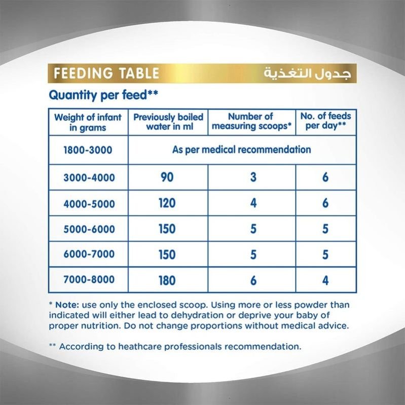 This feed contains 2.8 g of protein/100 g of DHA and is suitable for special medical purposes, post-hospital discharge, and dietary management of infants with low birth weight and prematurity.