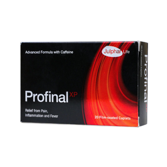 Profinal XP Tablet is a combination of Ibuprofen (400mg) and Caffeine, designed to provide fast and effective relief from pain, fever, and inflammation. The added caffeine enhances the pain-relieving effect of ibuprofen, making it especially useful for headaches and migraines.