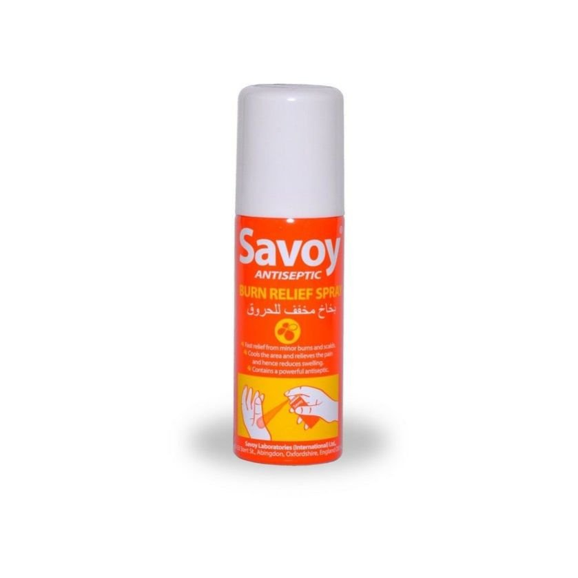 Savoy antiseptic spray gives fast relief from minor burns and scalds, relieves pain ,reduce swelling and keeps the affected area cool. It contains Chlorhexidine 0.028%, an antiseptic compound, which prevents the possibility of infection in the affected areas.