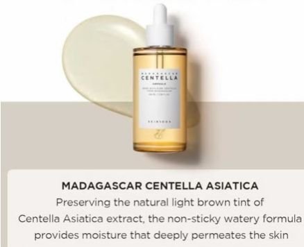Skin1004 Madagascar Centella Asiatica Ampoule Soothing Facial Serum is a hydrating skincare product containing the plant-based ingredient, reducing dry patches, regulating sebum production, hyperpigmentation, and dark spots.