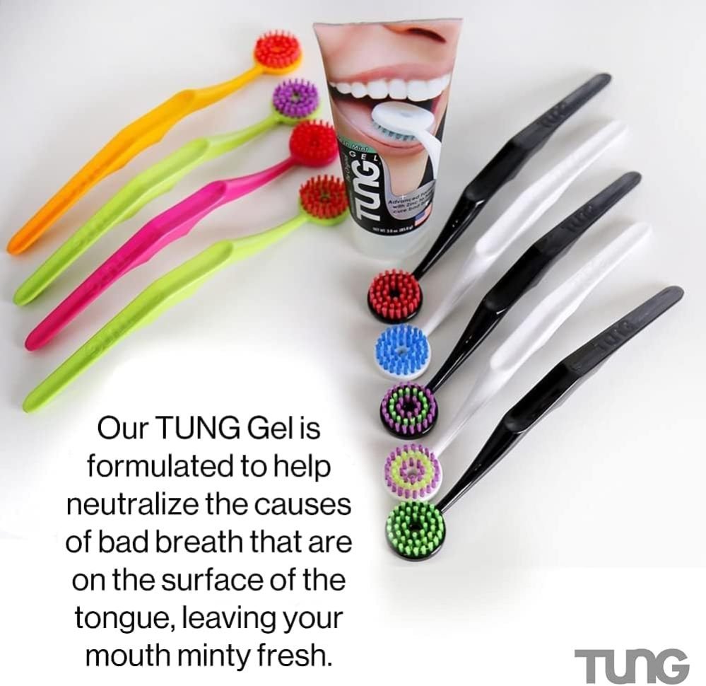 The Original TUNG Brush Tongue Cleaner is a highly effective oral hygiene tool designed specifically for cleaning the tongue, an area often overlooked in daily dental care. Unlike regular toothbrushes, the TUNG Brush features a unique, ergonomically designed head with soft bristles that gently yet thoroughly clean the surface of the tongue, helping to remove odor-causing bacteria and food debris.