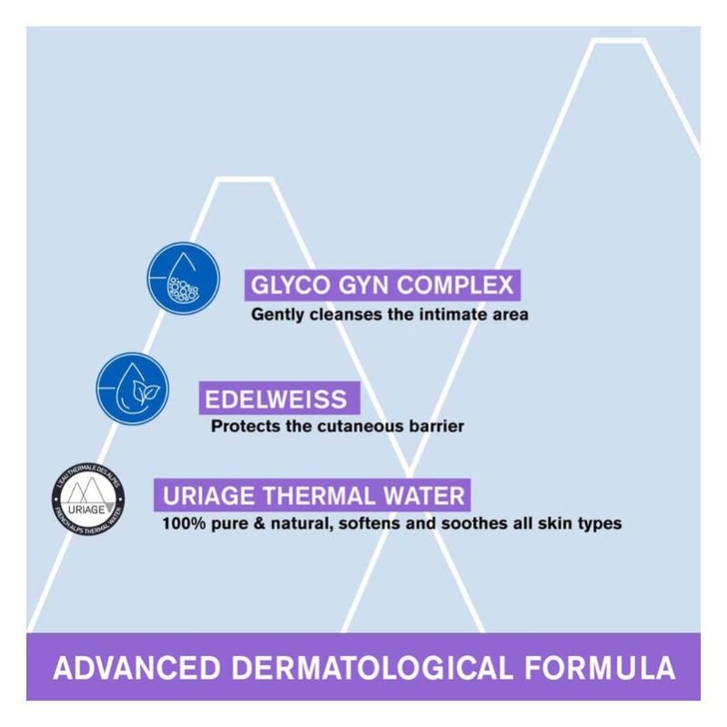 Uriage Gyn-Phy refreshing intimate cleansing gel is a feminine wash that gently cleanses and maintains the natural balance of the intimate area. It quickly relieves and calms sensations of discomfort and instantly restores natural balance to the intimate areas. It is formulated with GLYCO-GYN complex, piroctone olamine, and Uriage thermal water. The cleansing GLYCO-GYN complex (glyco-esters and glyco-flavonoids of Edelweiss) delivers a gentle cleansing action without causing dryness. Edelweiss protects the cutaneous barrier, and piroctone olamine provides antibacterial action and helps to kill odour-causing microbes and maintains intimate area hygiene. Uriage thermal water soothes and softens the skin, providing a calm sensation of comfort instantly. The alkaline pH combined with piroctone olamine helps restore the natural balance of the intimate flora. Uriage Gyn-Phy intimate hygiene soothing wash is hypoallergenic with a physiological pH of 5.5 and tested under gynaecological supervision. It has a pleasant floral fragrance. This product is specifically formulated for the daily hygiene of the external intimate mucous membranes.