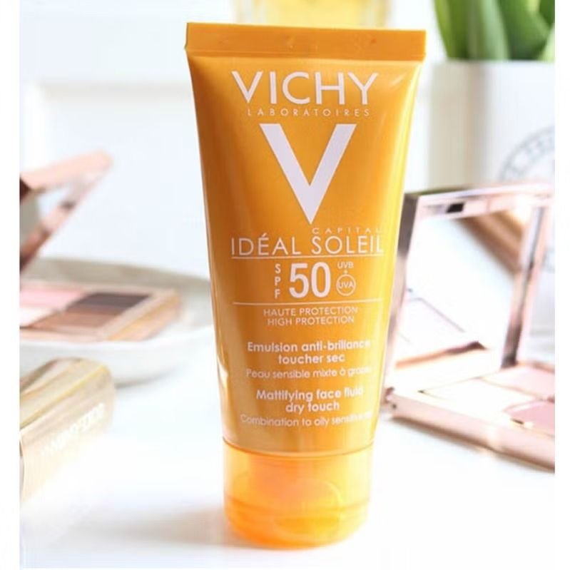 Vichy Capital Ideal Soleil SPF 50 Mattifying Dry Touch Face Fluid provides deep cellular protection for combination and greasy skin.