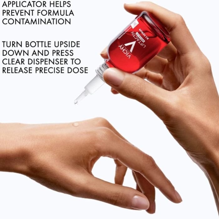 Details Under daily aggressions dark spots increase by 25%..Vichy LIFTACTIV B3 DARK SPOTS SERUM acts at different skin layers, to tackle dark spots formation at the epidermis basal layer while peeling visible dark spots at the skin surface. B3 serum also reduces wrinkles. Complexion looks even and radiant.Because efficacy and respect of your skin is our priority at Vichy, B3 DARK SPOTS SERUM has been clinically measured by dermatologists to be suitable for all skin types & phototypes.