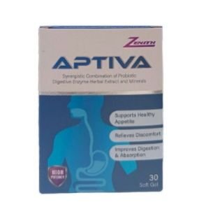 Zenith Aptiva Soft Gel is a dietary supplement formulated to support digestive health. It combines probiotics, digestive enzymes, herbal extracts, and minerals to enhance appetite, relieve discomfort, and improve digestion and nutrient absorption. The inclusion of L-Carnitine supports cellular metabolism, providing a well-rounded approach to digestive wellness.